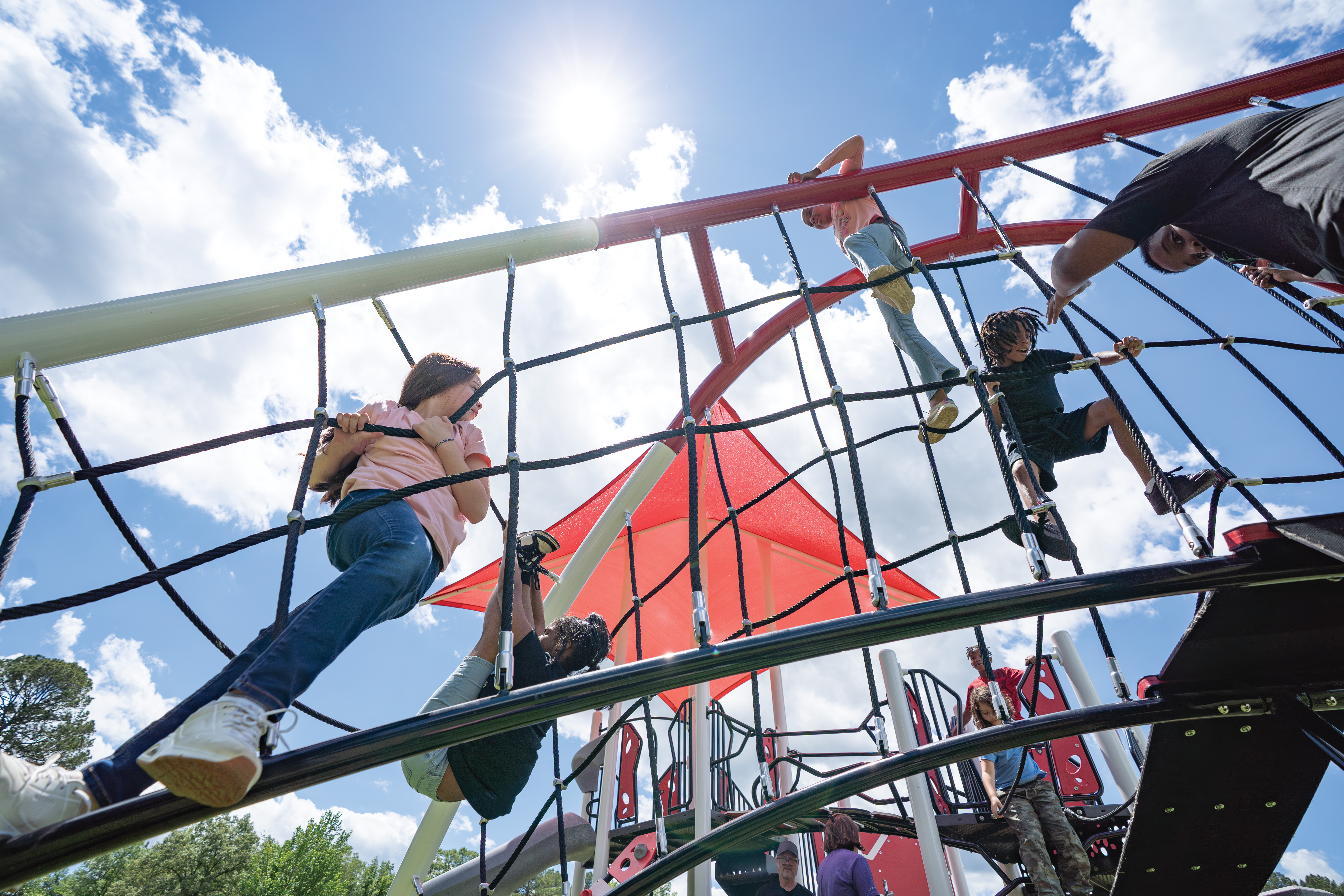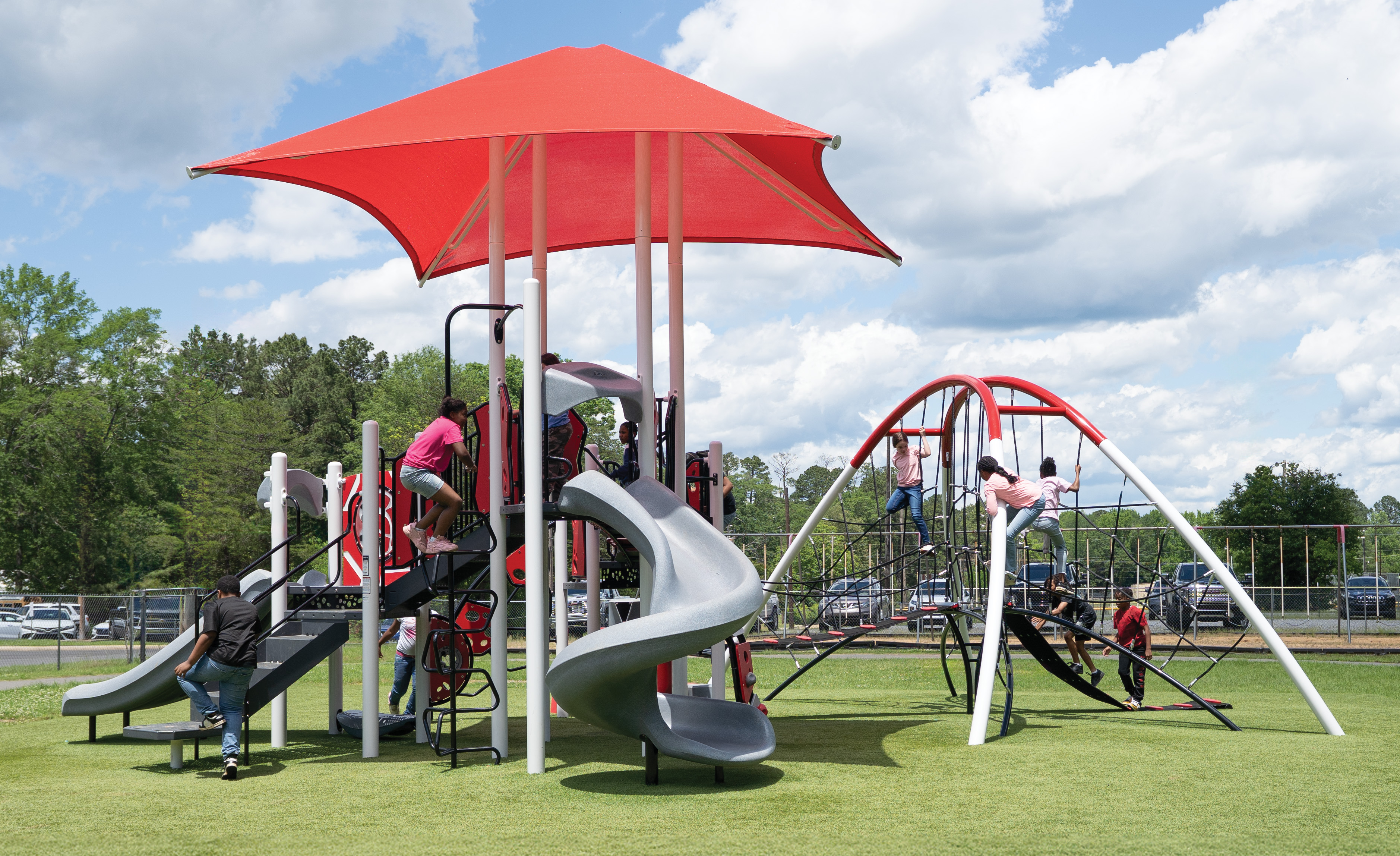 When Fairview Elementary in Camden, Arkansas, set out to create the perfect playground, they knew exactly what their students needed — engaging challenges that build confidence without overwhelming, shade that keeps kids comfortable even on warm Arkansas days and separate play areas that offer variety and choice. Two separate play areas across the campus — one featuring the Velo™ XL Slide, the other with Level X Ally® — give students ages 5-12 exactly what teachers hoped for: equipment scaled to their abilities with enough variety to support their developmental journey and interests throughout these crucial years.
