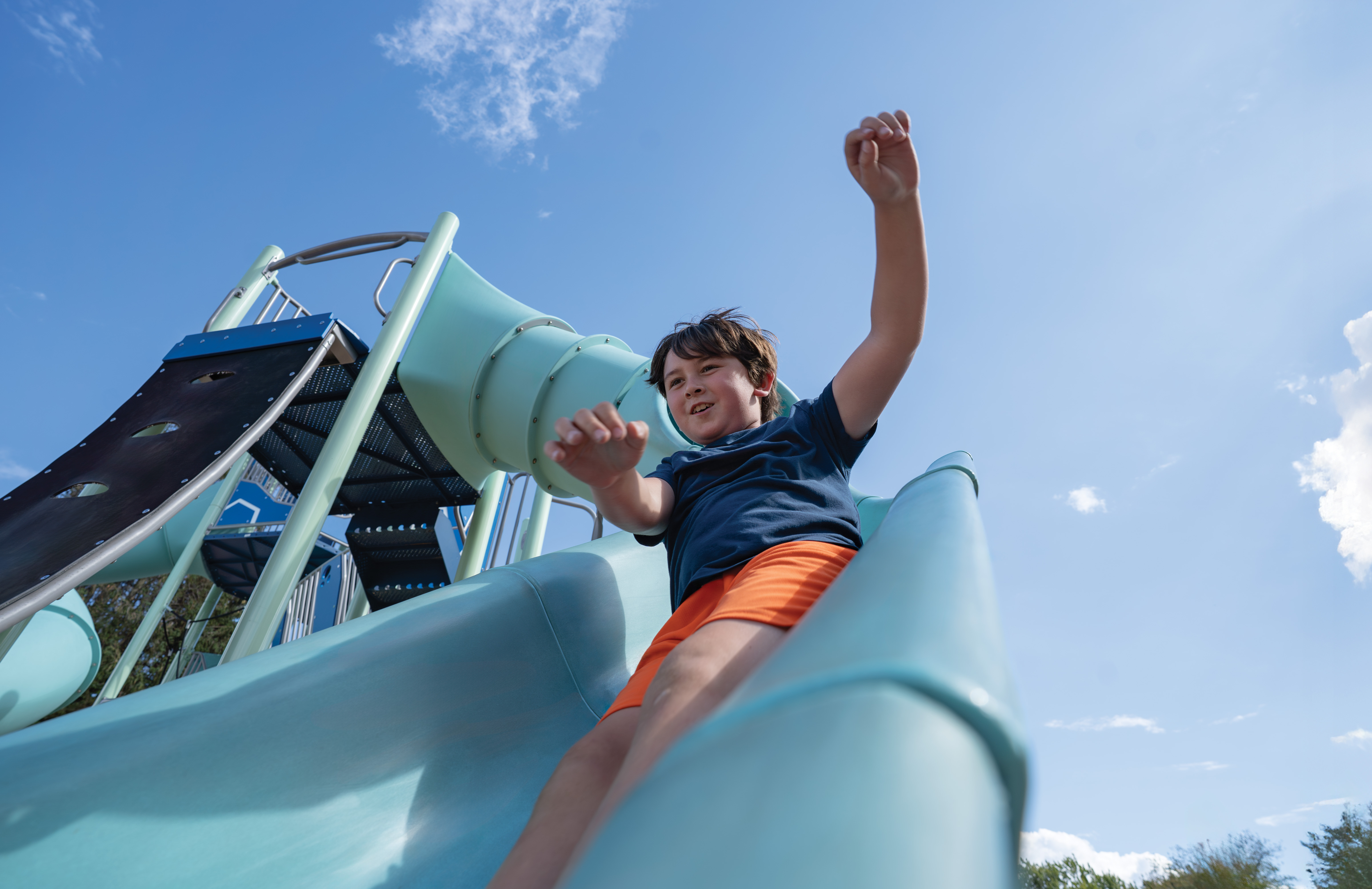 When New Castle needed a playground that could hold its own next to Atlantic Ocean views, they chose Burke equipment in an array of nautical blue hues — ocean, mint and classic blue paired with silver accents — that celebrates the coastline. This thoughtful palette creates a playspace that feels like a natural extension of this historic seaside park.