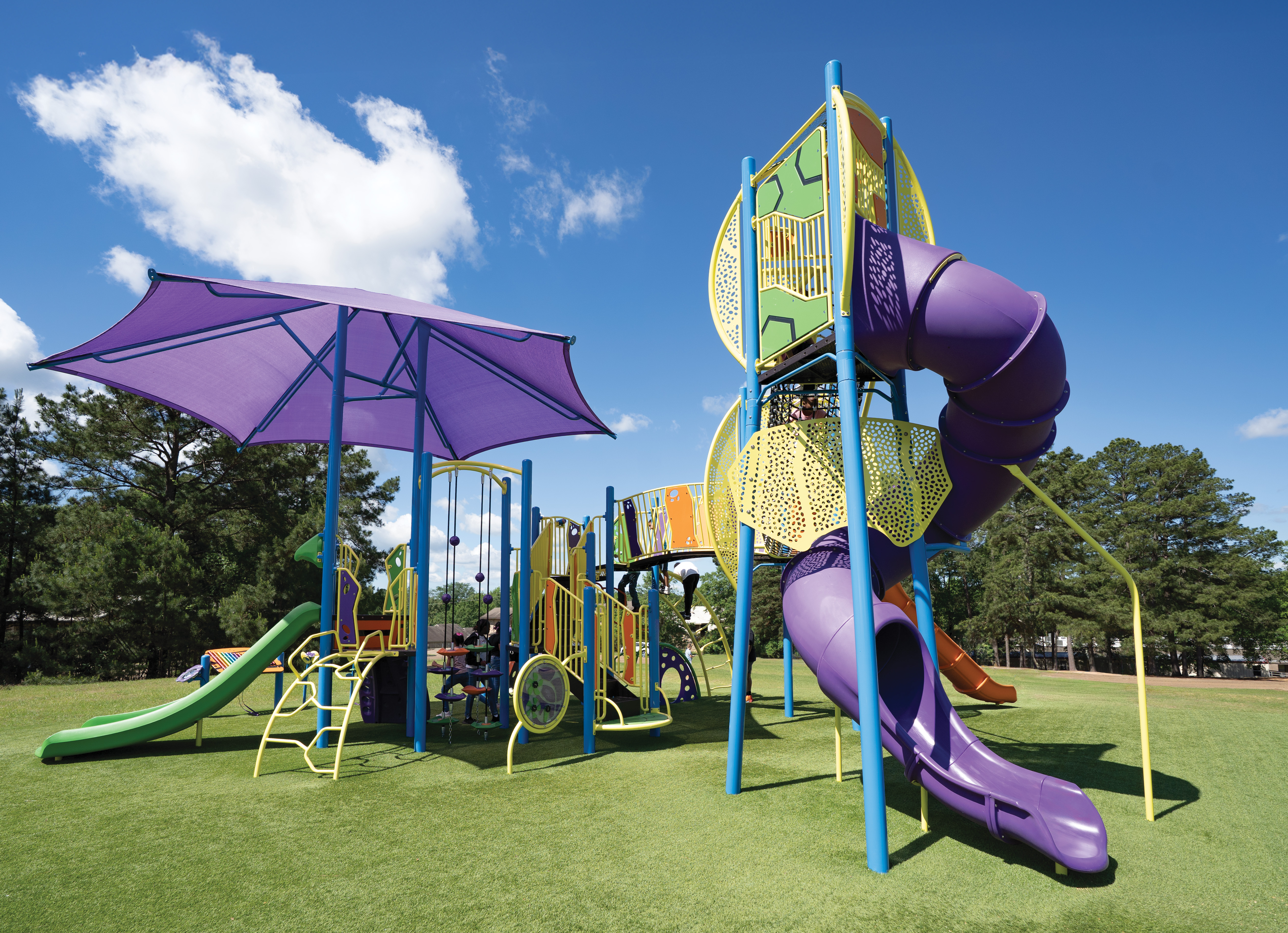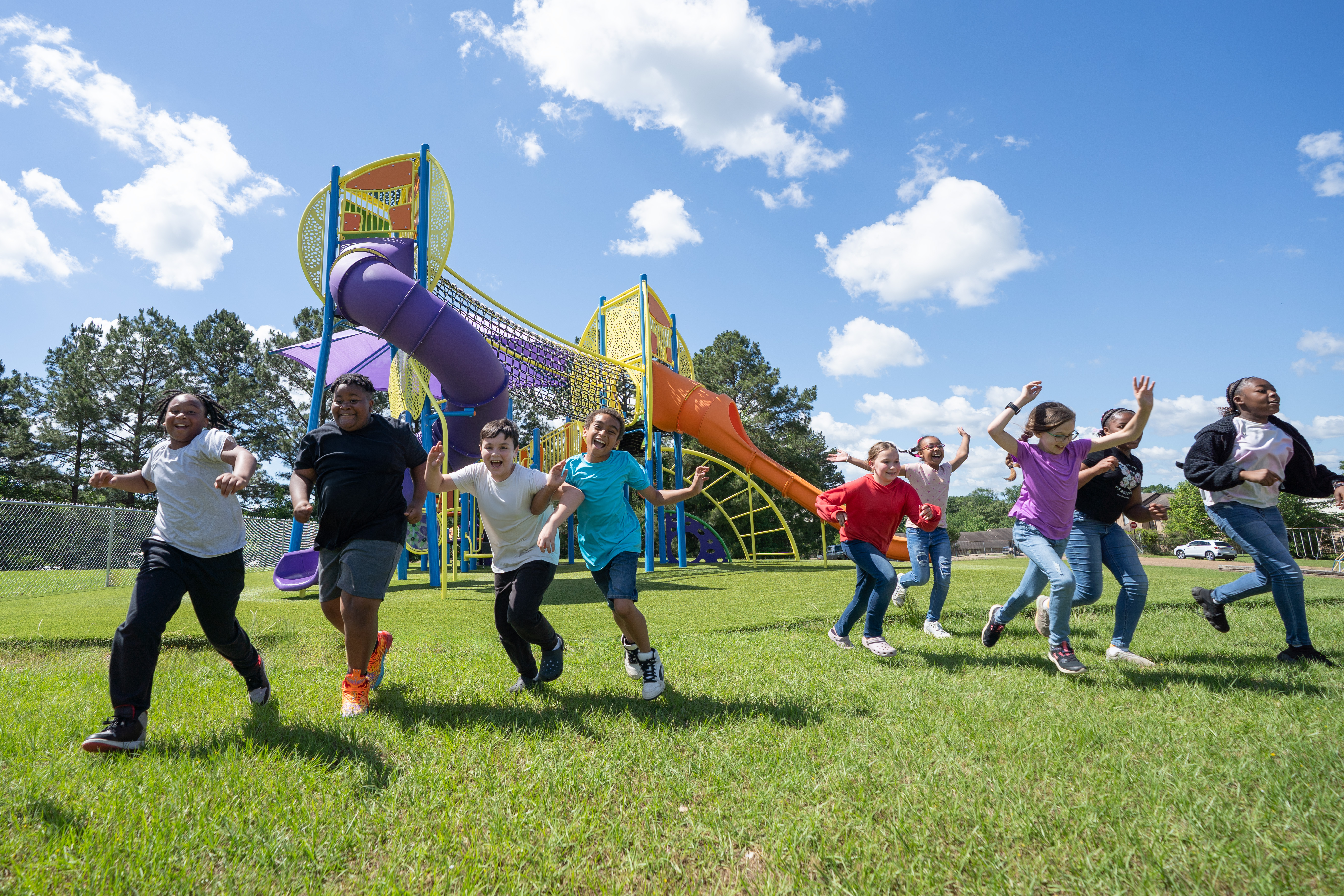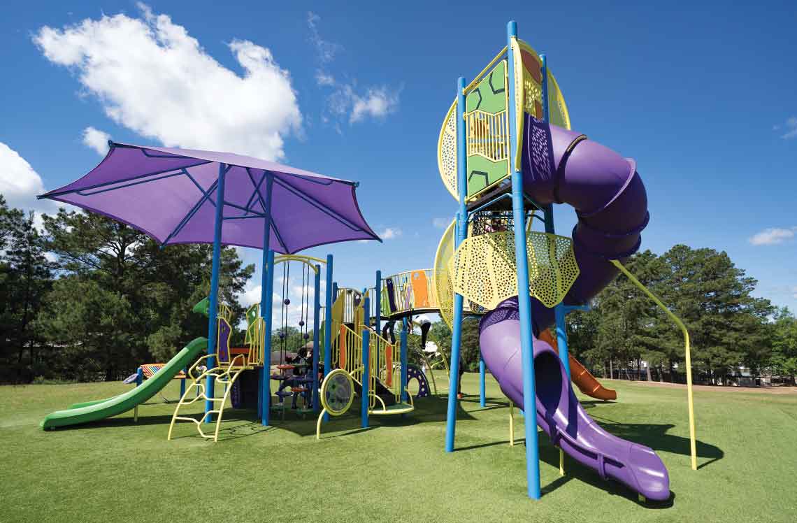 The exclusive Burke representative partner for Arkansas, Davis Playgrounds, helped bring this vibrant, adventure-ready playground to life.