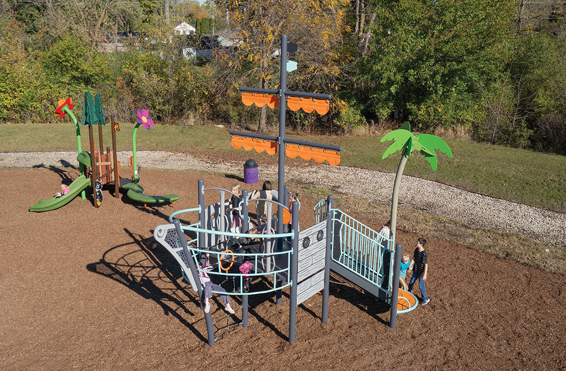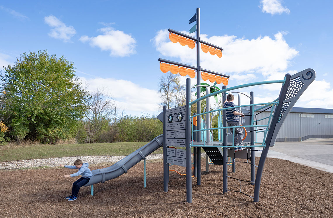 Great playspace design begins with an inspired vision. Our local Representative and Burke’s Design Team will bring your vision to life and create a community space for kids, families and neighbors to engage and be active outdoors. Themed play environments can tell a story, transform the ordinary into the extraordinary and let imaginations run wild while helping children learn creative problem solving, social skills and self-expression. From an astronaut on a rocket to a pirate on a ship to a character yet to be dreamt, this is Themed Play That Moves Us!