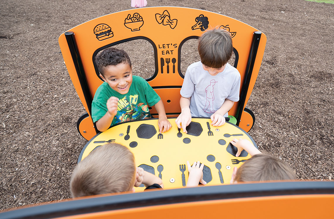 Pretend play is an important part of child development and helps children learn about themselves and their surroundings, supports social and emotional development and improves problem solving abilities. The Burke Express is the ultimate in imaginative play and with so many ways for children to interact with each other, a caregiver and their environment. Details on the Express make it a fun experience for children to learn while climbing, socializing and playing!