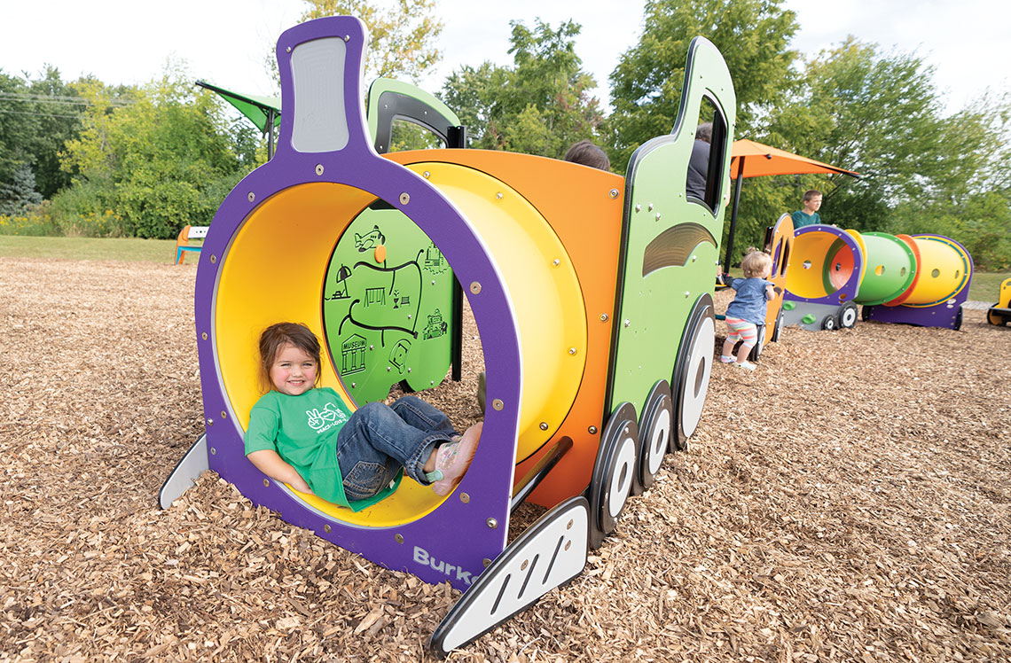Pretend play is an important part of child development and helps children learn about themselves and their surroundings, supports social and emotional development and improves problem solving abilities. The Burke Express is the ultimate in imaginative play and with so many ways for children to interact with each other, a caregiver and their environment. Details on the Express make it a fun experience for children to learn while climbing, socializing and playing!