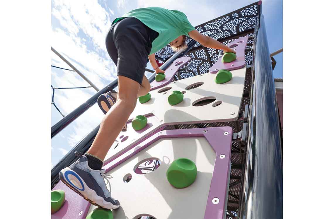 Bringing the energy of climbing walls to your playspace with Burke, the Cliff Crest Climber features realistic textures, purposeful grips and mapped out climbing paths to create a true vertical adventure for children. Visual crack lines cut through the surface of the climber, mimicking natural rock formations and providing both tactile and visual cues that guide climbers along multiple routes. With endless access points and loads of climbing paths, ergonomically designed handholds inspired by real rock ledges and a wide range of color options, this climber supports physical development, coordination and resilience and creates rock climbing masters. Designed for Nucleus® and Synergy® play structures, the Cliff Crest Climber raises the play value while fitting seamlessly into your space.