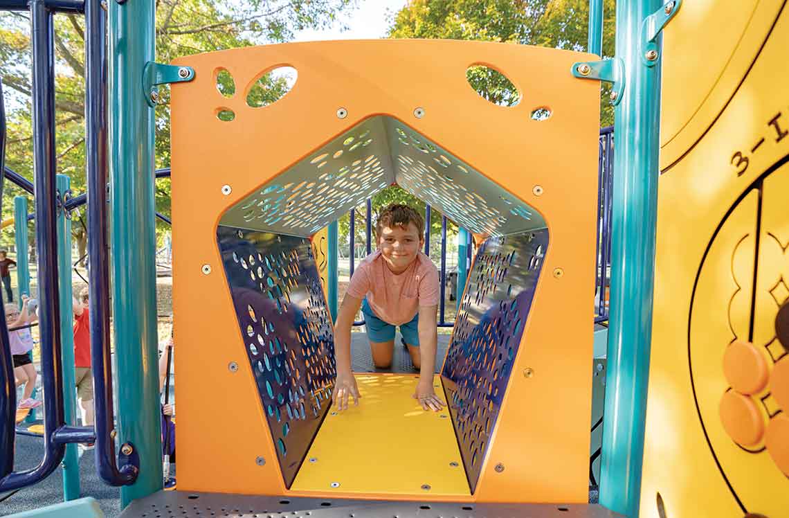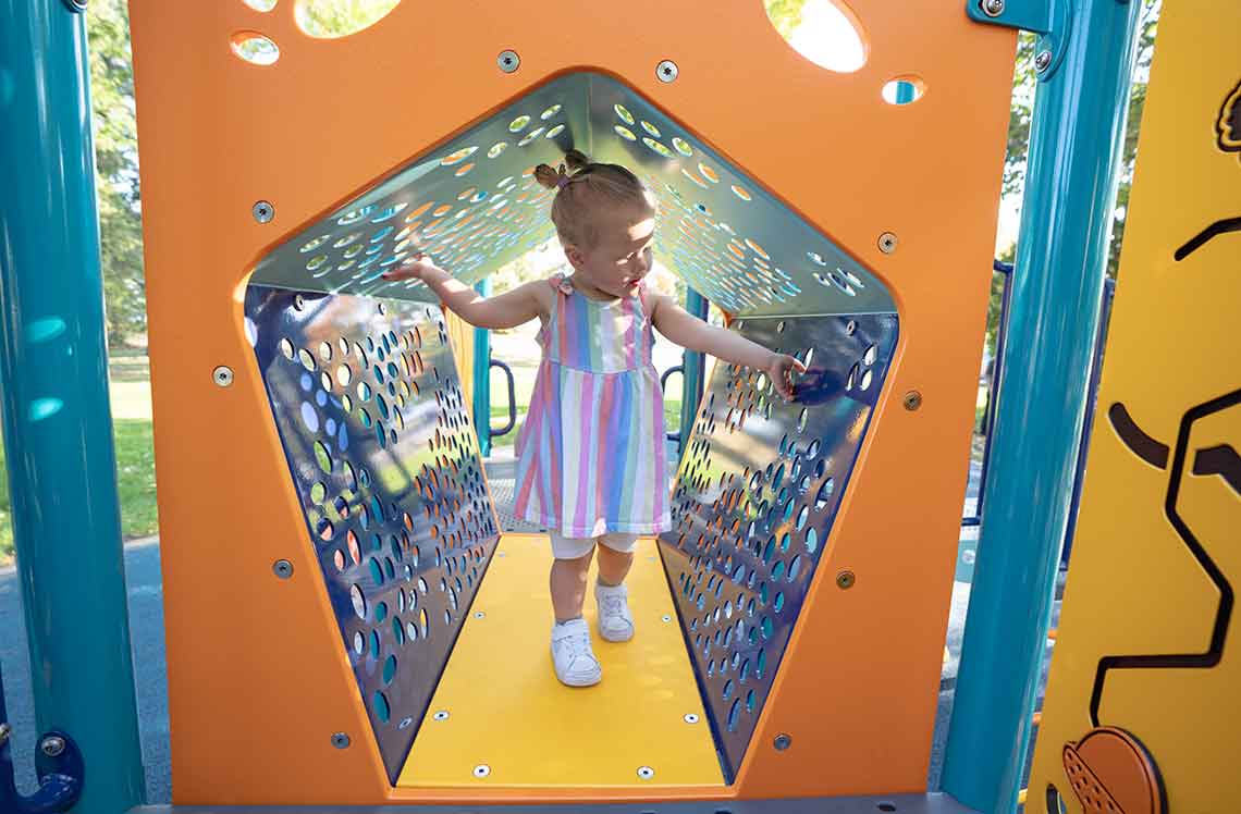 The Lumen Tunnel offers a new way to tunnel, one that blends movement, imagination and an atmospheric experience in an exciting design that is both budget- and space-friendly. At 36 inches in length, it connects seamlessly with other Synergy® components, adding flow and fun to any space. With a sense of wonder built into every detail, the Lumen Tunnel creates an astronomical experience when light filters through the patterns in the tunnel. This sparks curiosity and encourages exploration for kids while they crawl, pause, peek and imagine as they travel through the tunnel. Engaging their senses and stretching their creativity in a space that feels energetic, imaginative, playful and otherworldly is what the Lumen Tunnel is all about.