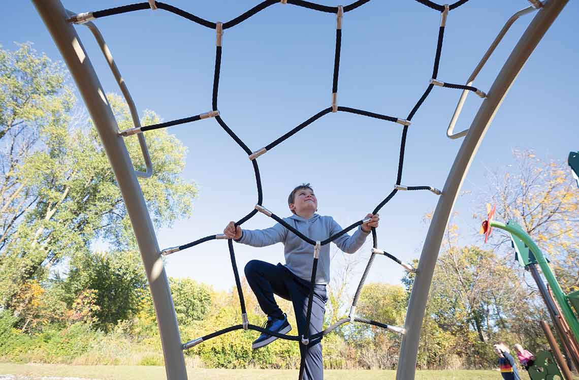 Inspired by the excitement and adventure of large-scale rope structures, Modo Climber offers that same immersive, 3D climbing experience and integrates seamlessly into play structures. It creates adventure, turns structures inward for space saving and brings high play value to any playspace.
