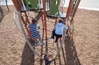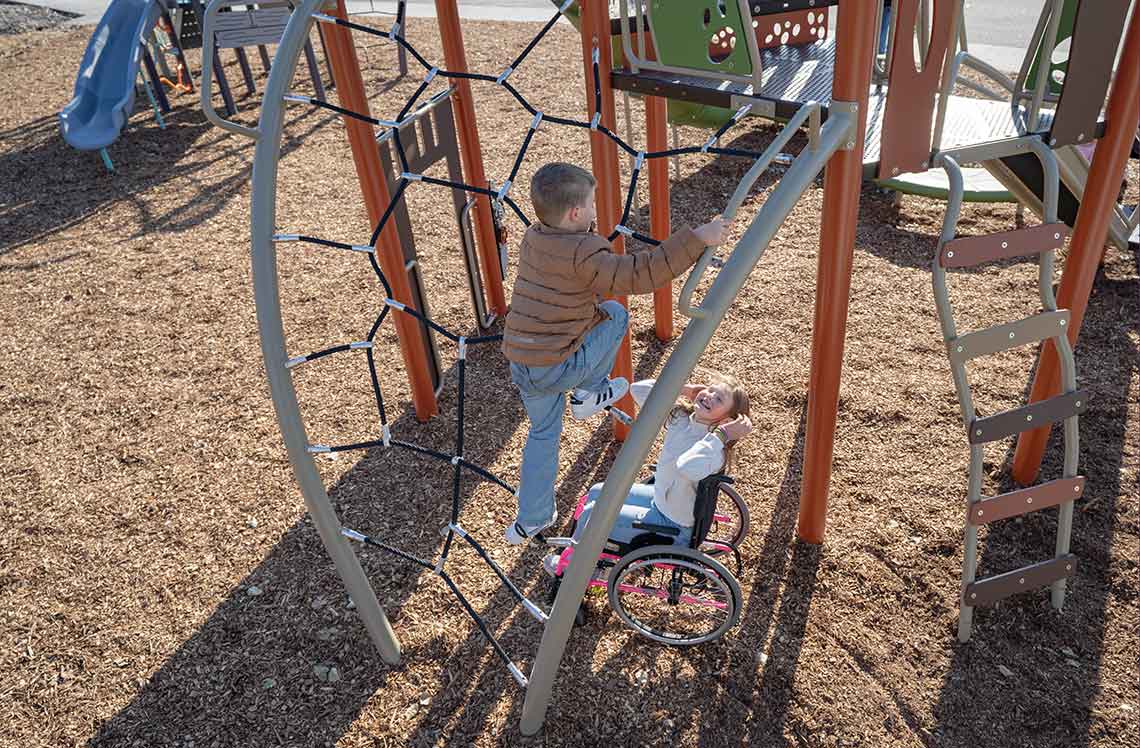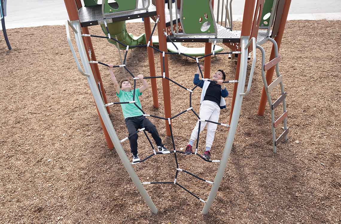 The future of climbing is here, and it's flexible, space-saving and packed with purpose. Modo Climber delivers high-intensity play and full-body movement in a footprint that adapts to any playground design. Connecting parallel platforms at two different heights, a unique feature of the Modo Climber, opens new possibilities for movement, challenge and creative climbing. With platform heights ranging from 48 to 96 inches, the compact vertical layout encourages added exploration and storytelling in a smaller footprint. Climbing nets challenge kids to think and play in three dimensions. Every route they choose builds strength, coordination and spatial awareness — skills that transcend the playground and into other areas of their lives and development. Modo Climber offers multiple climbing paths, including parallel routes, angled ascents and access from both sides. Underneath the climber, a path opens new ways to move, climb, crawl and create inclusive play opportunities.