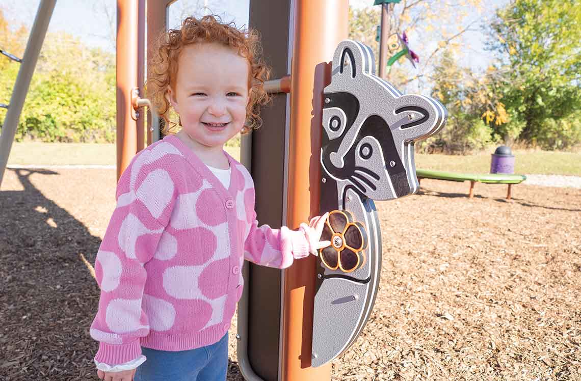 The Raccoon offers an imaginative play experience where kids can engage with their environment and use a spinner while working on fine motor, social and communication skills.