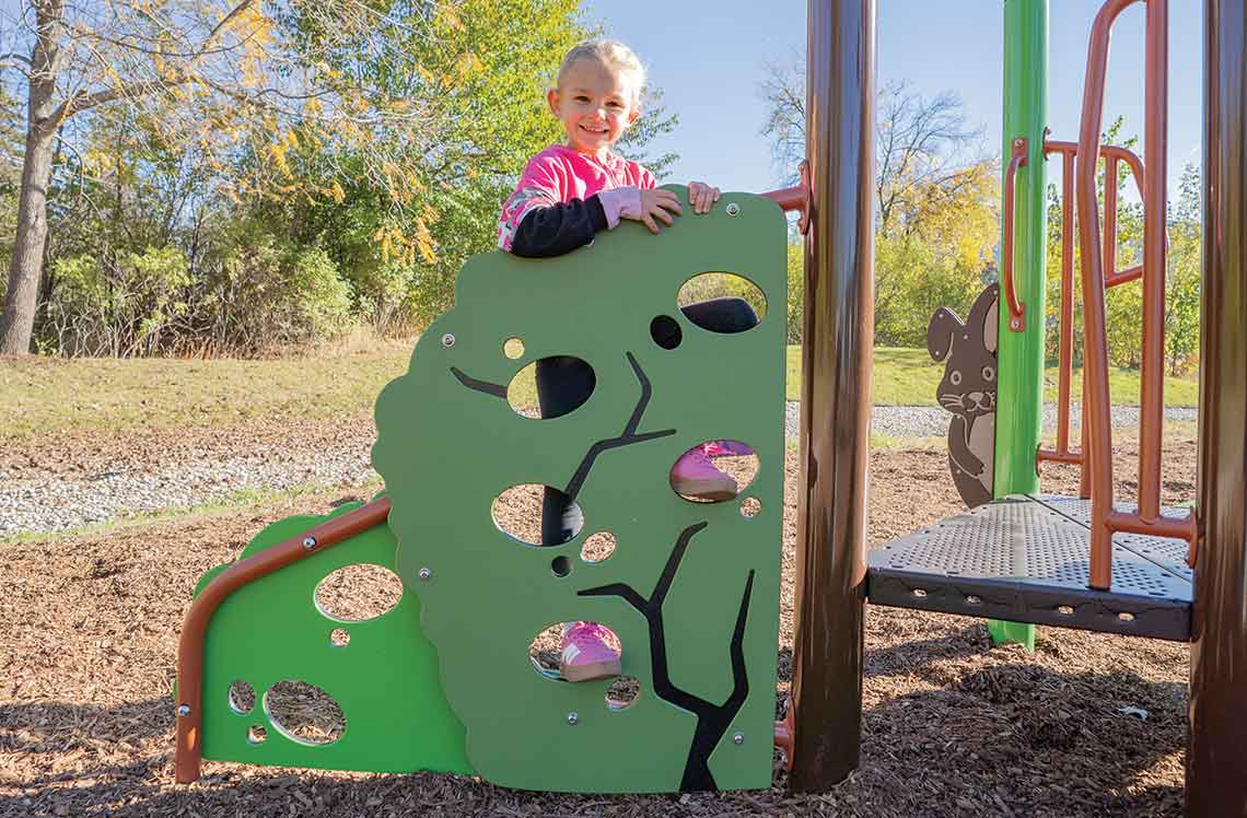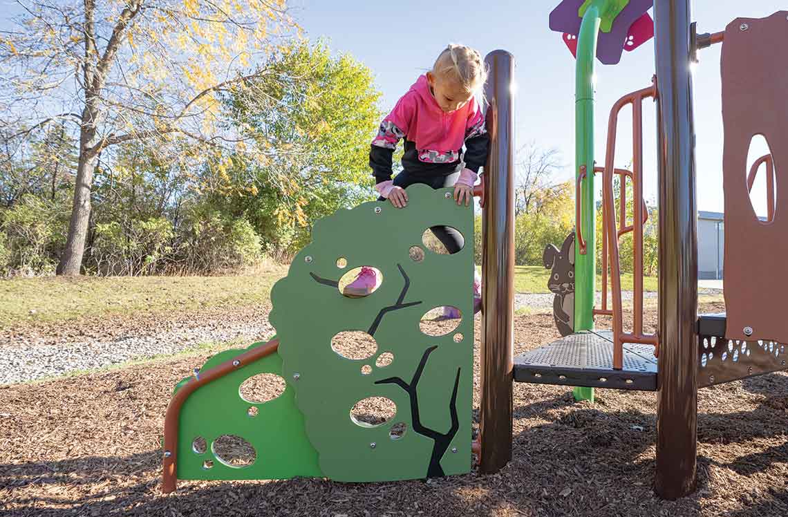 The dual-sided NaturePlay® Woodland Climber invites tactile discovery and physical challenge. Designed with rounded edges and sculpted depth, it supports balance, coordination and imaginative play while blending beautifully into nature-inspired settings or bringing a natural vibe to cityscapes.