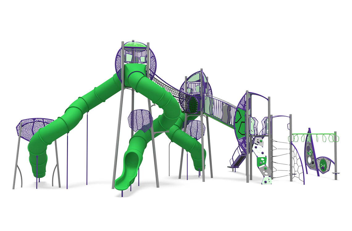 Action, adventure, development and a play experience like no other, Nucleus Aspire® looks as incredible as it is. Rope tunnels cross the sky and offer views that inspire exploration and awe. The climbers create a challenging and fun way to get to the top and the slides bring a fast, twisty egress that will keep kids coming back for more. We all need aspirations — find yours here.