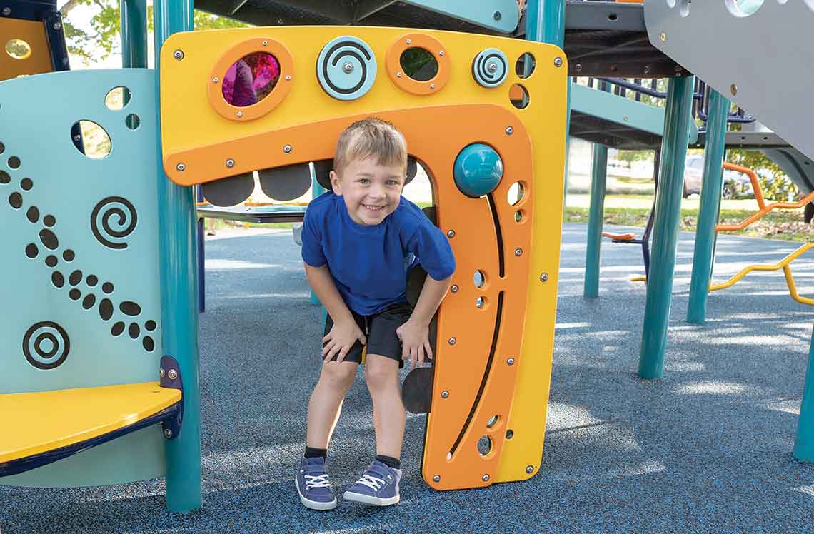 Discover the Sensory Wall, a fun, interactive play experience created to spark curiosity and engagement in compact spaces. Thoughtfully crafted to bring sensory exploration to more kids in more places, the Sensory Wall invites children to touch, spin, play and connect. Every element is designed for intuitive use, delivering big play value in a small footprint and utilizing under-deck space for play.