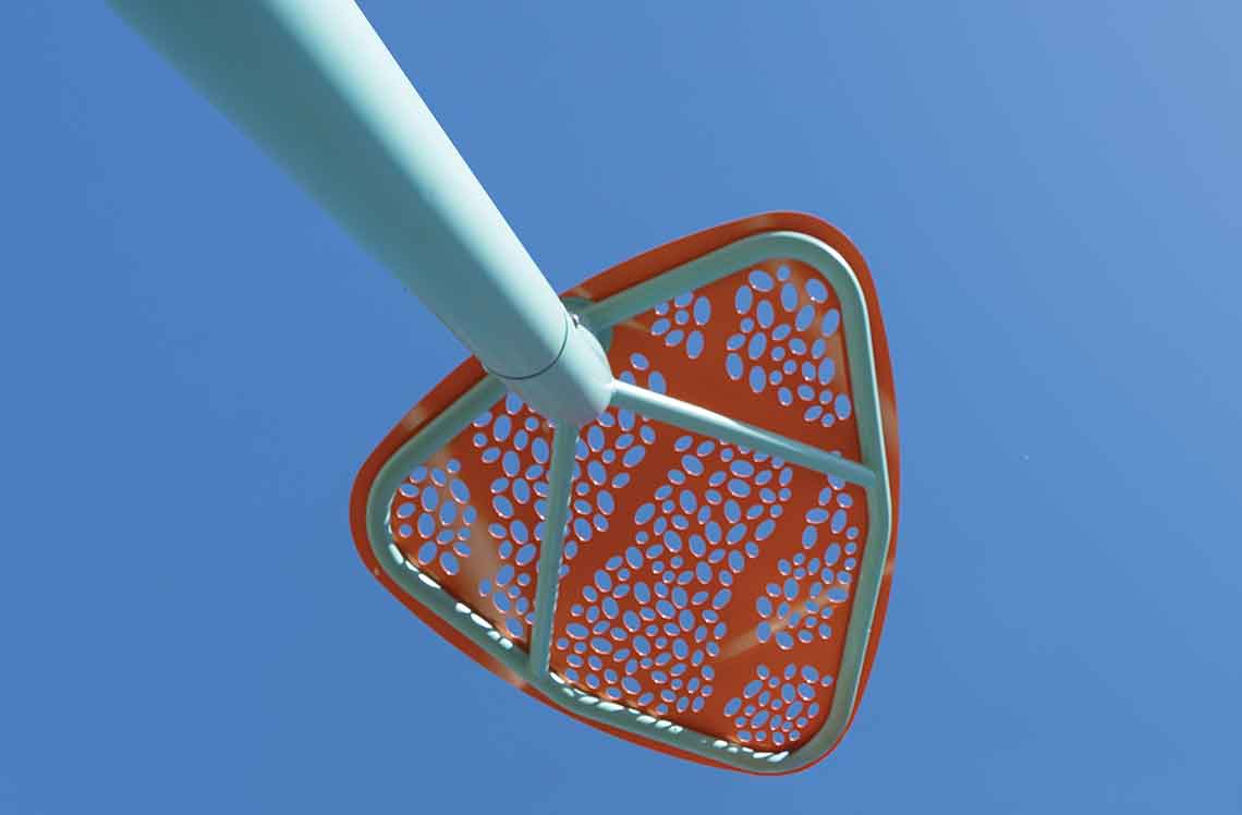 Solis and Solis XL bring sculptural design to play and reimagine what playground post toppers can be. Their leaf-inspired forms filter light to create natural shadow patterns — inviting wonder, movement and imagination. Also available in Hue, a translucent material that softens sunlight and expands color options, these elements help connect people to nature through form, light and a sensory experience.